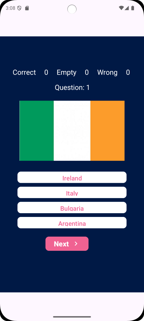 This is a world flag quiz application I’ve got published on my Google Play Developer account. Its a free download for anybody wanting to see how well they know the flags of the world or improve their knowledge.